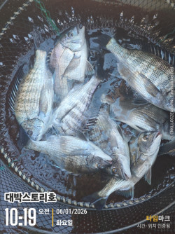 금.토.일요일자리여유있읍니다함께하실분문의주세요 새벽5시~오후1시전후철수 선비10만원 (밑밥미끼점심제공)*** 통영 대박 스토리호 예약안내 ***예약문의 선 장 : 010-8414-8425 사 무 장 : 010-2813-0303 출조항 : 경남 통영시 광도면 용호리 21-18 입금계좌 :수협 0010 8414 8425 (장성제)실시간 홈페이지 예약은 아래링크 클릭http://daebakstory.sunsang24.com
